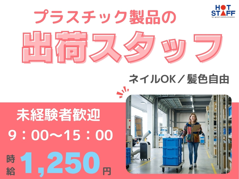 《プラスチック製品の出荷スタッフ》もくもく作業/ネイルOK/髪色自由/9:00~15:00/土日休み