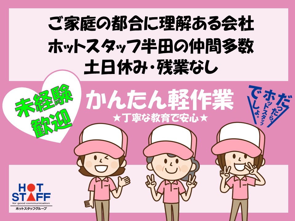 残り1名!【かんたん軽作業】初心者大歓迎/髪色ネイルOK♪/ホットスタッフ半田の仲間多数活躍中!/年間休日121日