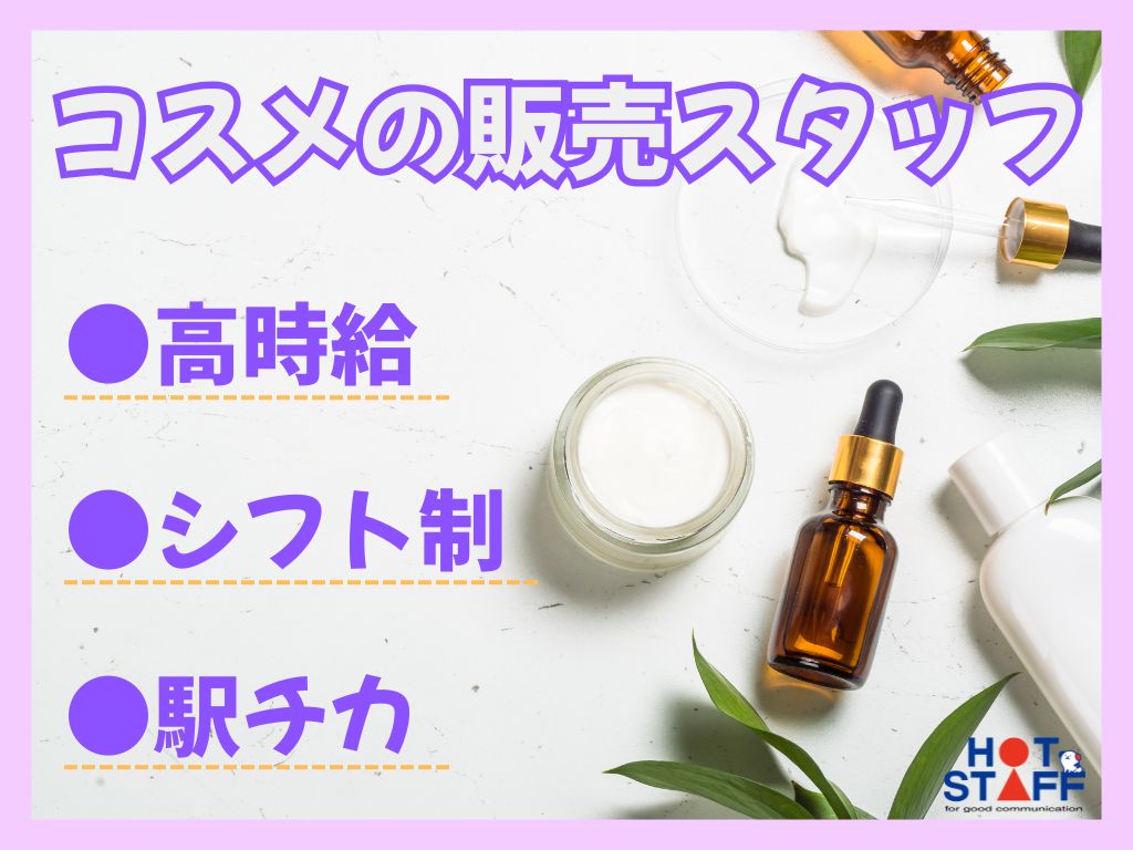 《コスメなどの販売スタッフ》レジ業務なし/未経験OK/週休二日のシフト制/駅チカ勤務◎
