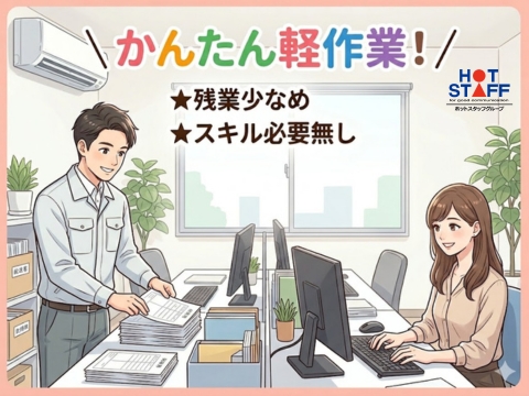 8:00~17:15/土日休み/残業少なめ/1,300円/伝票の仕分けがメインの入力ちょこっと♪