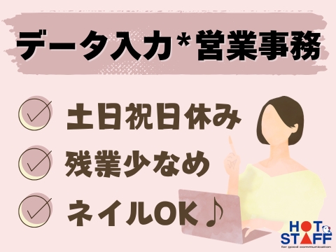8:20~17:20/土日祝休み◎/残業少なめ/受注業務やフォーマットへの入力作業などをお願いします