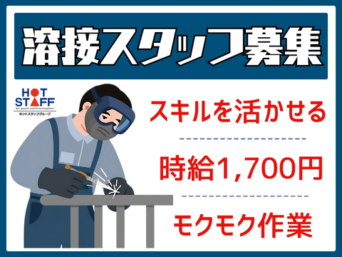 8時~17時/高時給1,700円/スキルを活かせる/座りの溶接作業がメイン*水門や配管などの製造