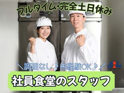 調理一切なし!社員食堂のスタッフさん♪【完全土日休み+大型連休】6:00~15:00・お昼無料♪