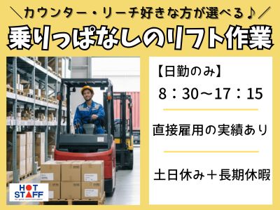 【リフト免許を活かせる♪】日勤・残業なし|リフト作業は2~3割|急かされない職場♪