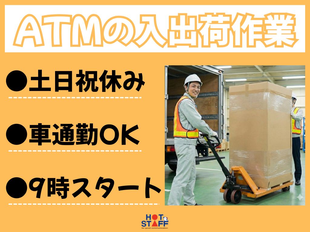 《ハンドリフトでATM機械の運搬など入出荷作業》9時~18時/土日祝休み/残業少なめ/車通勤OK◎