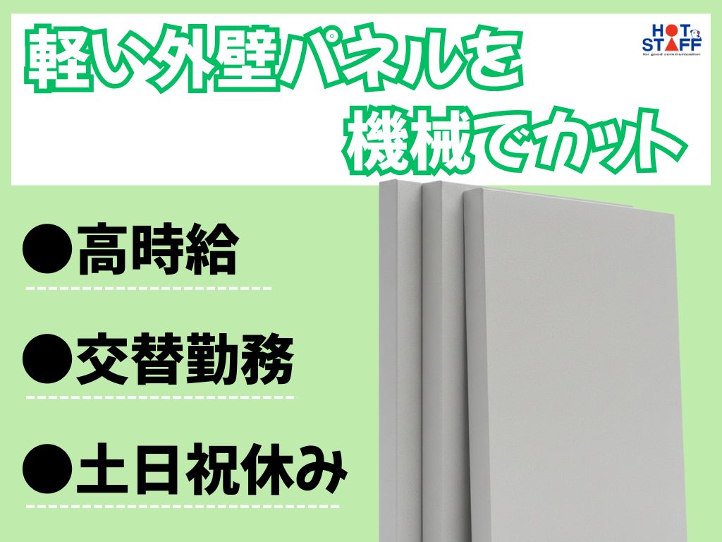 《軽量の外壁パネルをカットする機械オペレーター》交替勤務/土日祝休み/月収26万円以上も目指せます!