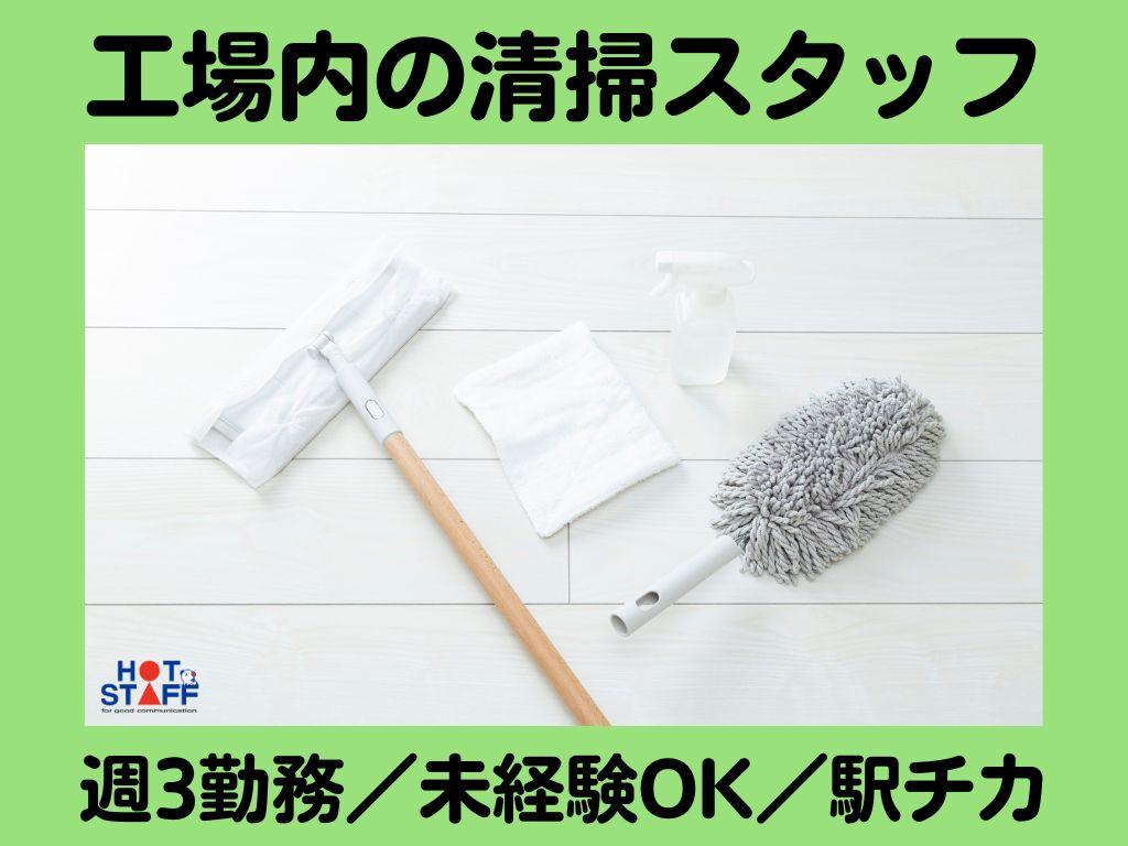 《工場の床掃除や窓ふきなどおそうじスタッフ》9時~15時/週3勤務/経験不問/駅チカ勤務
