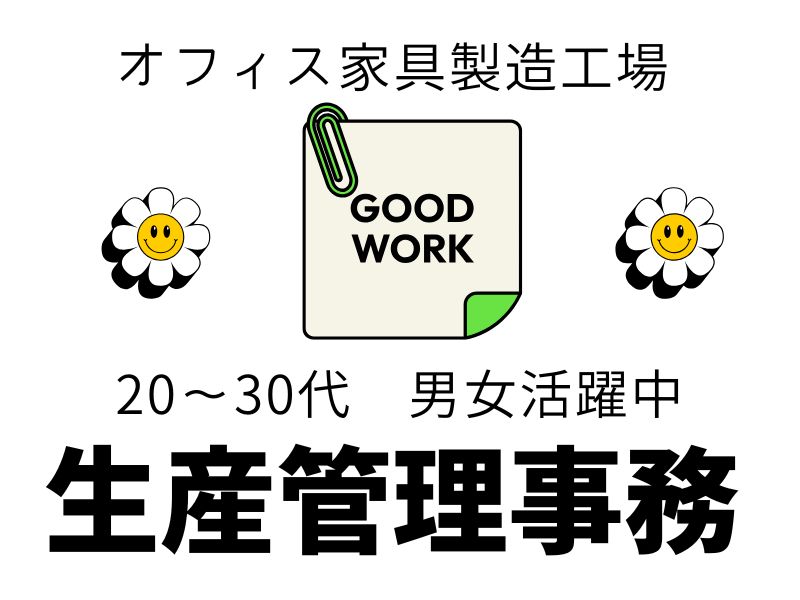 オフィス家具製造工場で生産管理スタッフ募集!土日祝休みで充実のワークライフバランス◎