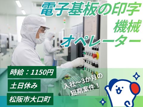 松阪市大口町/【時給1150円】土日休み◎基板の印字オペレーター★24h好きな時間を選べる♪入社~3ヶ月の短期のお仕事!