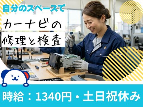 ◎土日祝休みで私生活を大切に◎無理な残業なし♪カーナビの修理・検査がメイン!自分のペースでコツコツお仕事♪