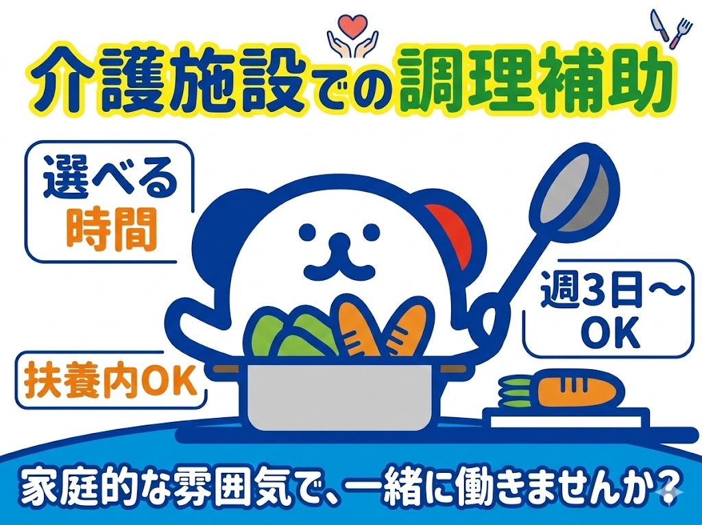 【選べる短時間×週3日~OK】介護施設でかんたん調理補助◎未経験者大歓迎♪〈扶養内OK〉