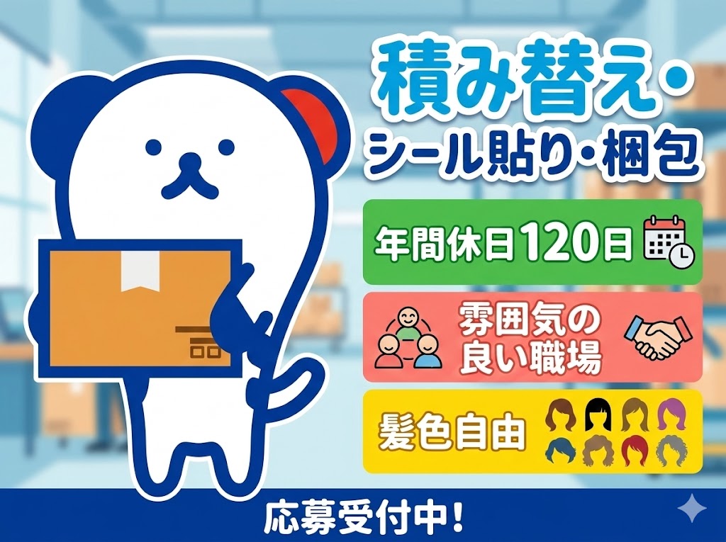 【カンタン&シンプル】9時スタート★物流センターで積み替え・梱包スタッフ!〈土日休み〉