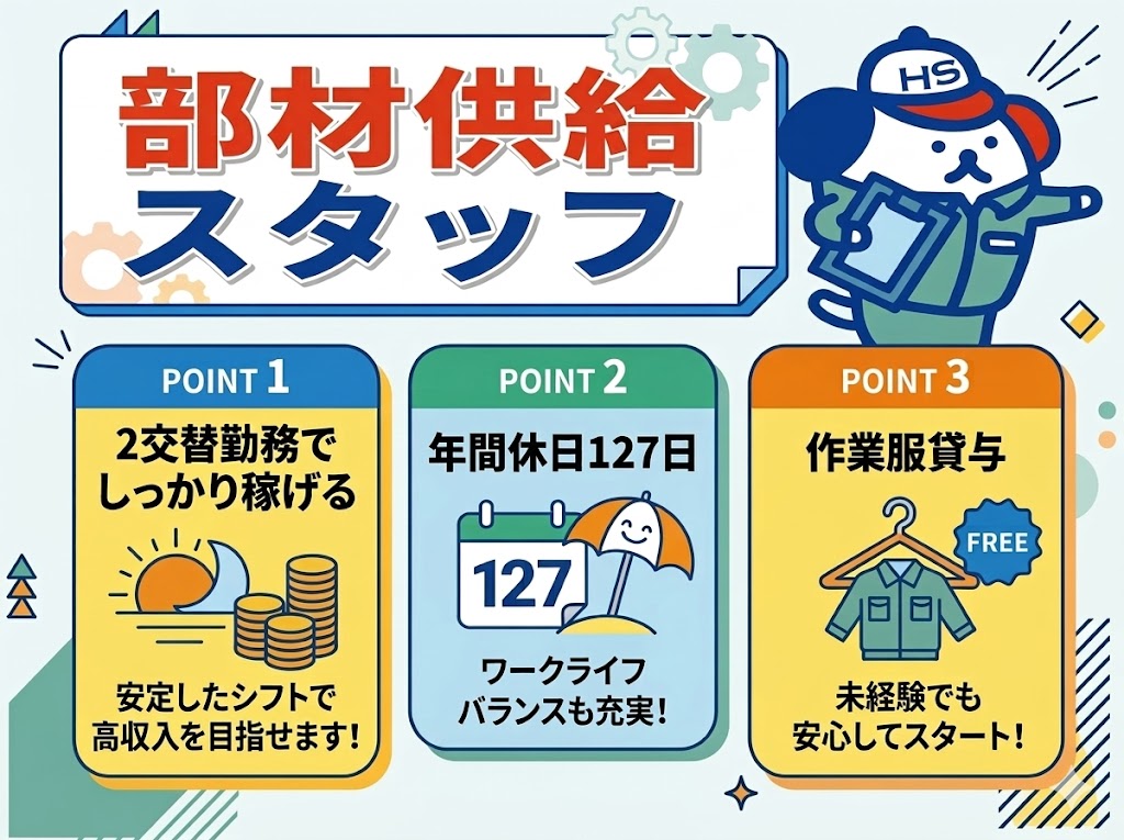 【草津市馬場町】高時給1400円★収入と休日を両立できる!工場内での部材供給スタッフ