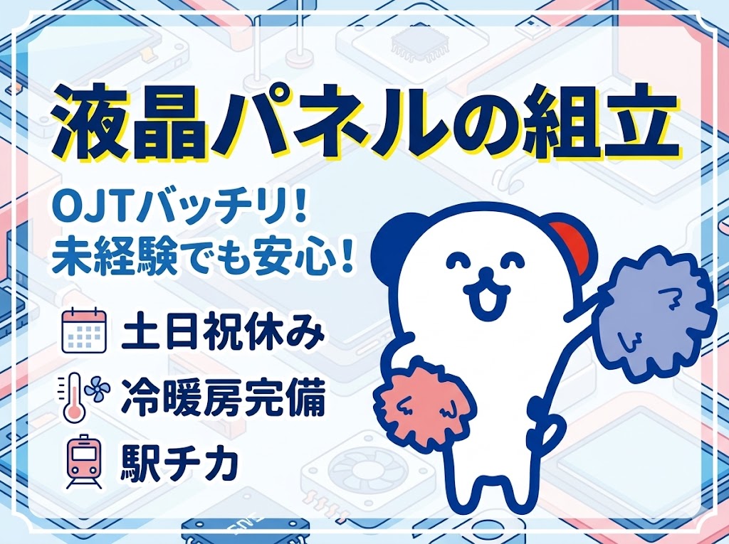 【駅チカ徒歩1分】液晶パネルの組立スタッフ募集★冷暖房完備&食堂などの設備◎