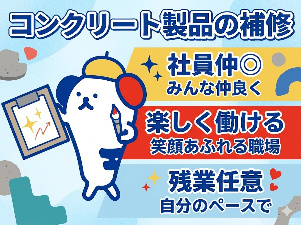 単純作業で無理なく♪ゆっくりマイペースに作業ができる!コンクリートの補修作業◎