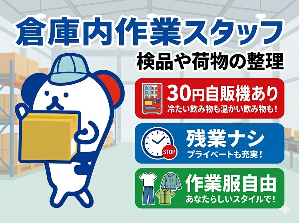 【未経験者歓迎】夏も安心!休憩しっかり◎倉庫内作業スタッフ募集!〈残業なし&土日休み〉