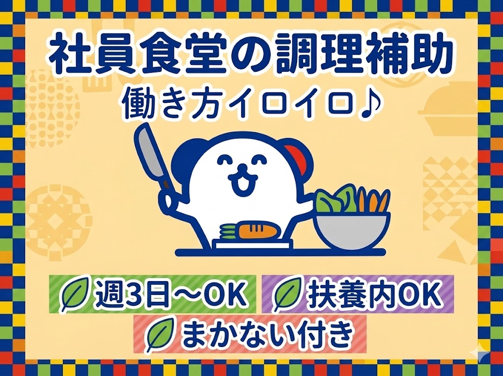 【土日祝休み&平日週3~OK】未経験歓迎&資格不問!社員食堂の調理補助★〈扶養内OK〉