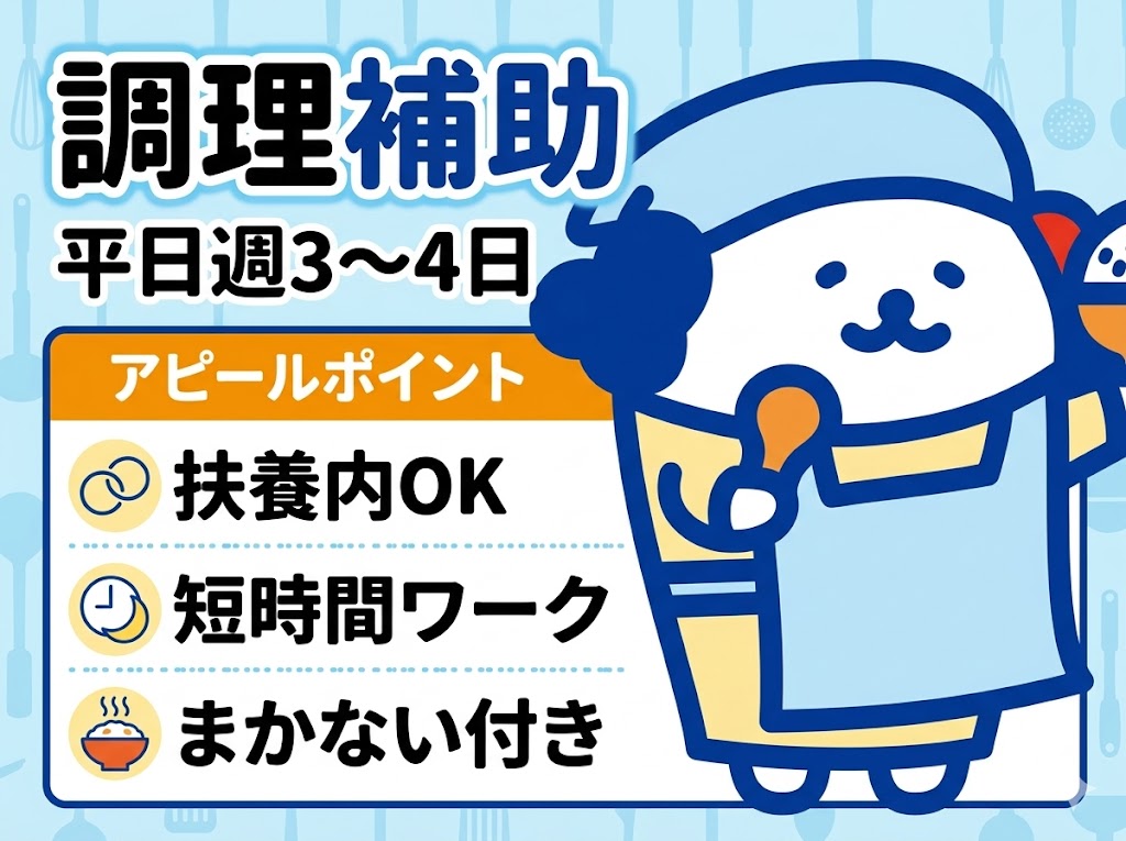 選べる時間で私らしく★未経験からはじめる調理補助◎【週3~&扶養内OK】