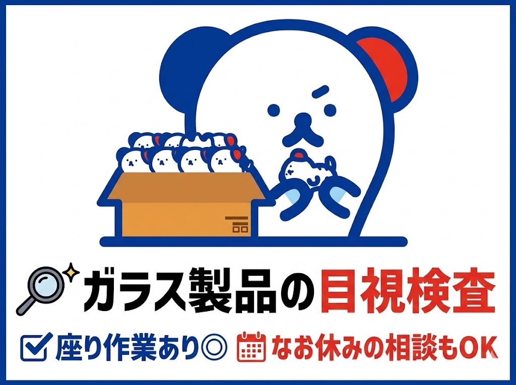 【土日祝休み】ガラス製品の目視検査♪座り作業あり◎コツコツ進めるシンプルワーク!