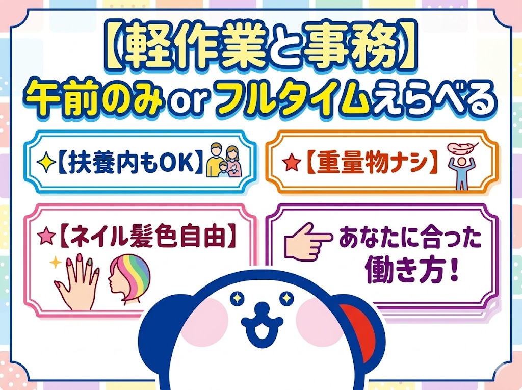 【AMのみorフルタイム】選べる働き方♪コツコツ軽作業&事務スタッフ募集★〈未経験者歓迎〉