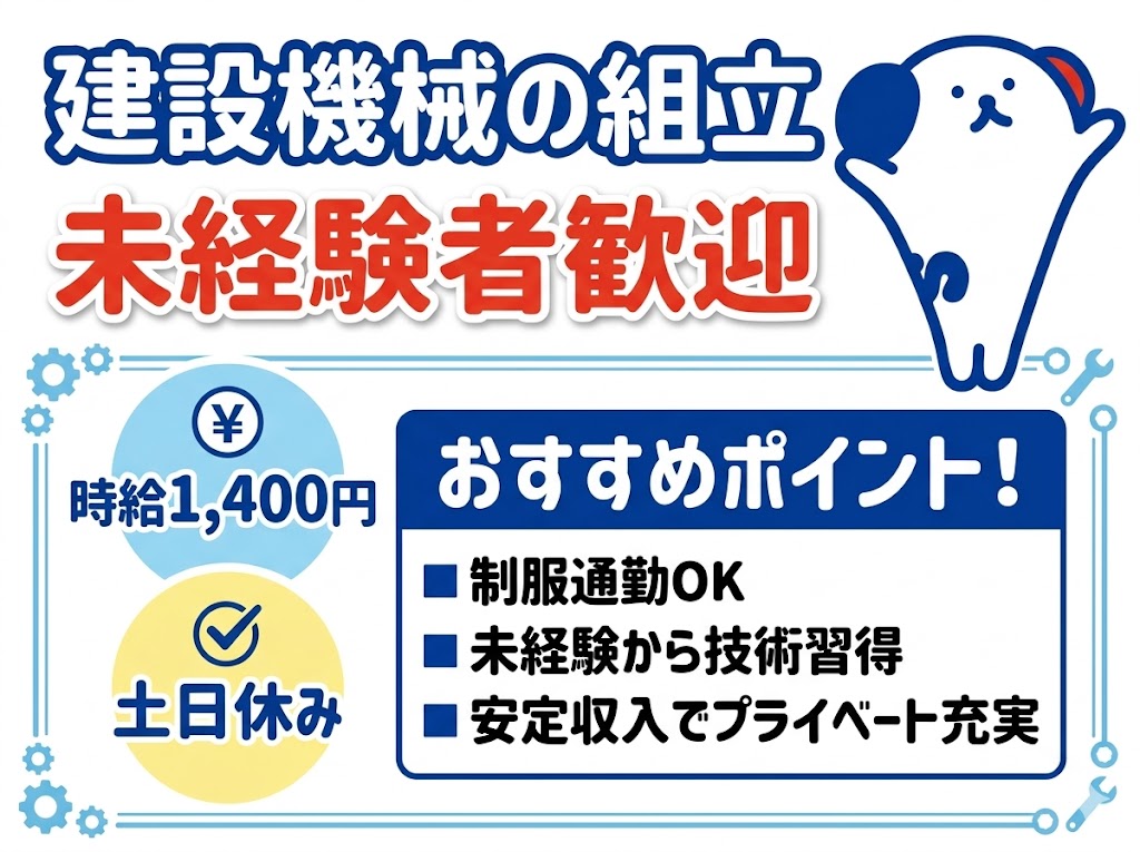 【甲賀市水口町】高時給1400円◎土日休み!未経験OK!建設機械の組立スタッフ募集★
