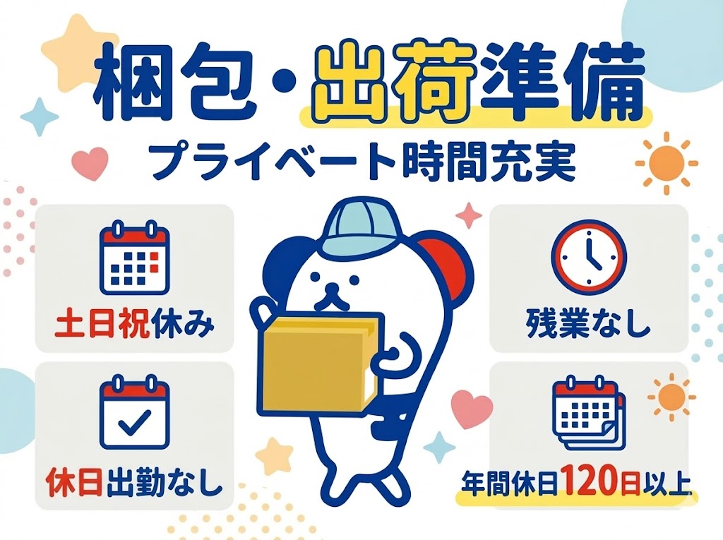 【未経験者歓迎】かんたん梱包&出荷準備スタッフ♪土日祝休み&残業なしでプライベート充実★