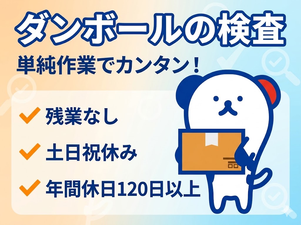 【単純作業】モクモク段ボールの検査作業★時給1,400円&土日祝休み!残業ナシで定時退社OK♪