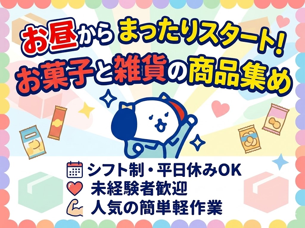 【ゆっくりお昼スタート!】キレイな倉庫内にて商品集め★シフト制で平日休みOK★〈空調完備〉