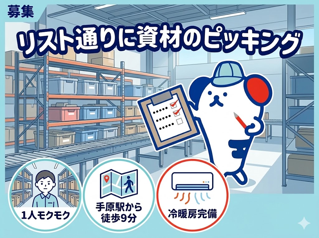 【冷房・暖房あり】雰囲気の良い穏やかな職場で部品の入出庫作業♪〈OJT研修あり〉