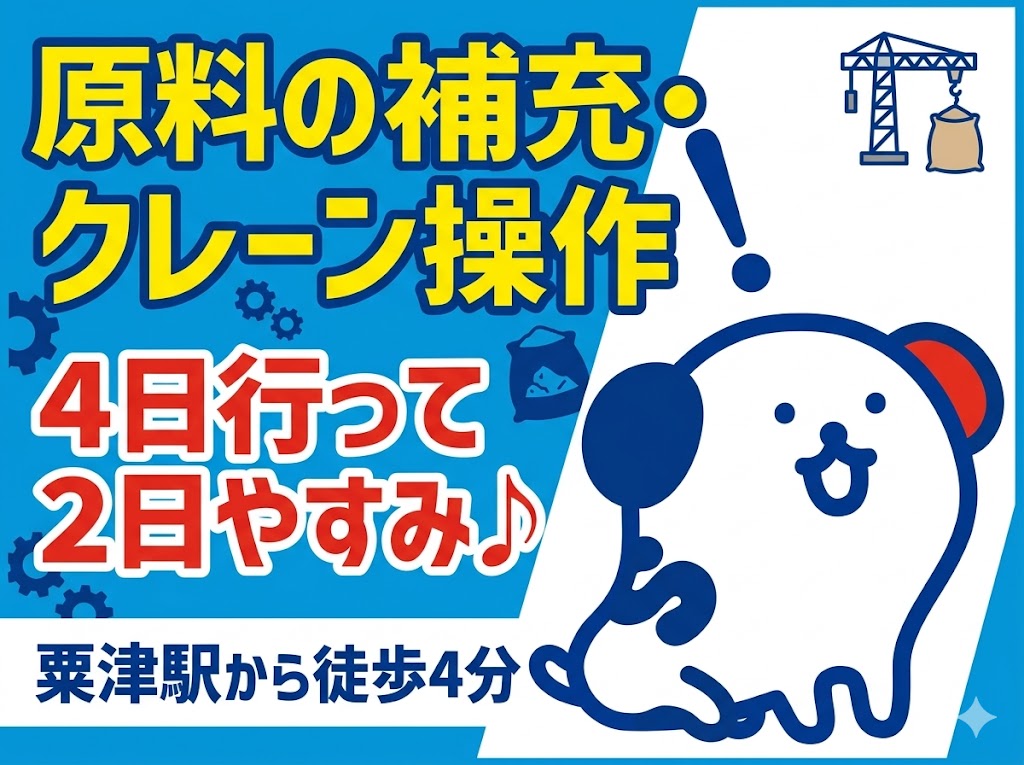 【粟津駅から徒歩4分】4勤2休&日勤★倉庫内で原料の補充スタッフ!格安食堂あり◎