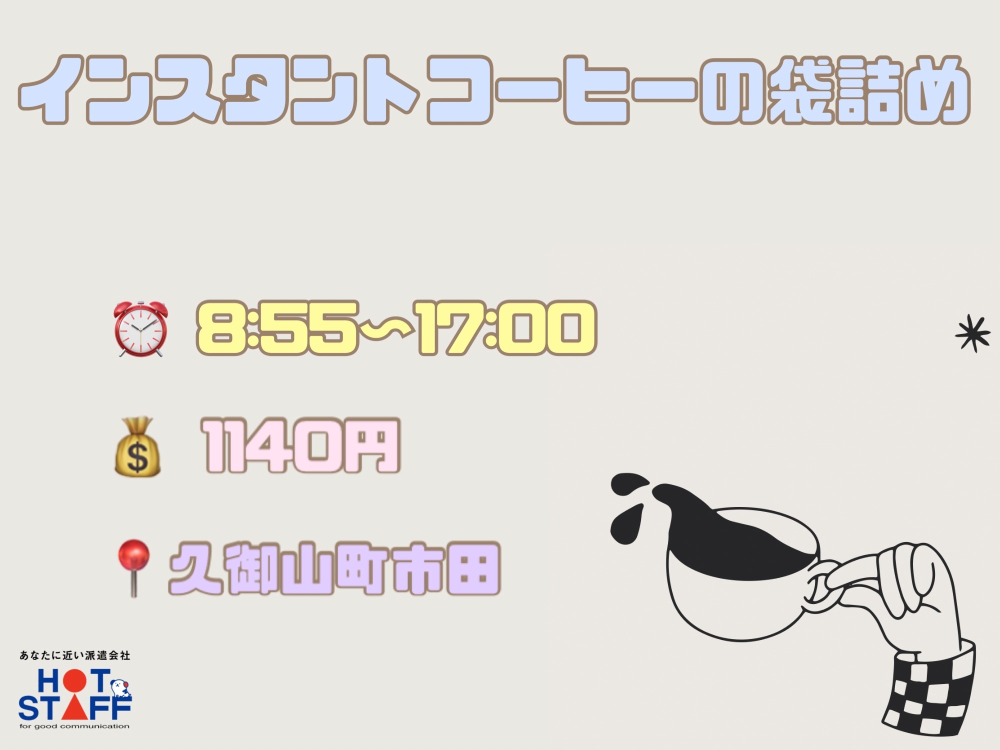 有名ブランドのインスタントコーヒーの仕分けや袋詰め作業