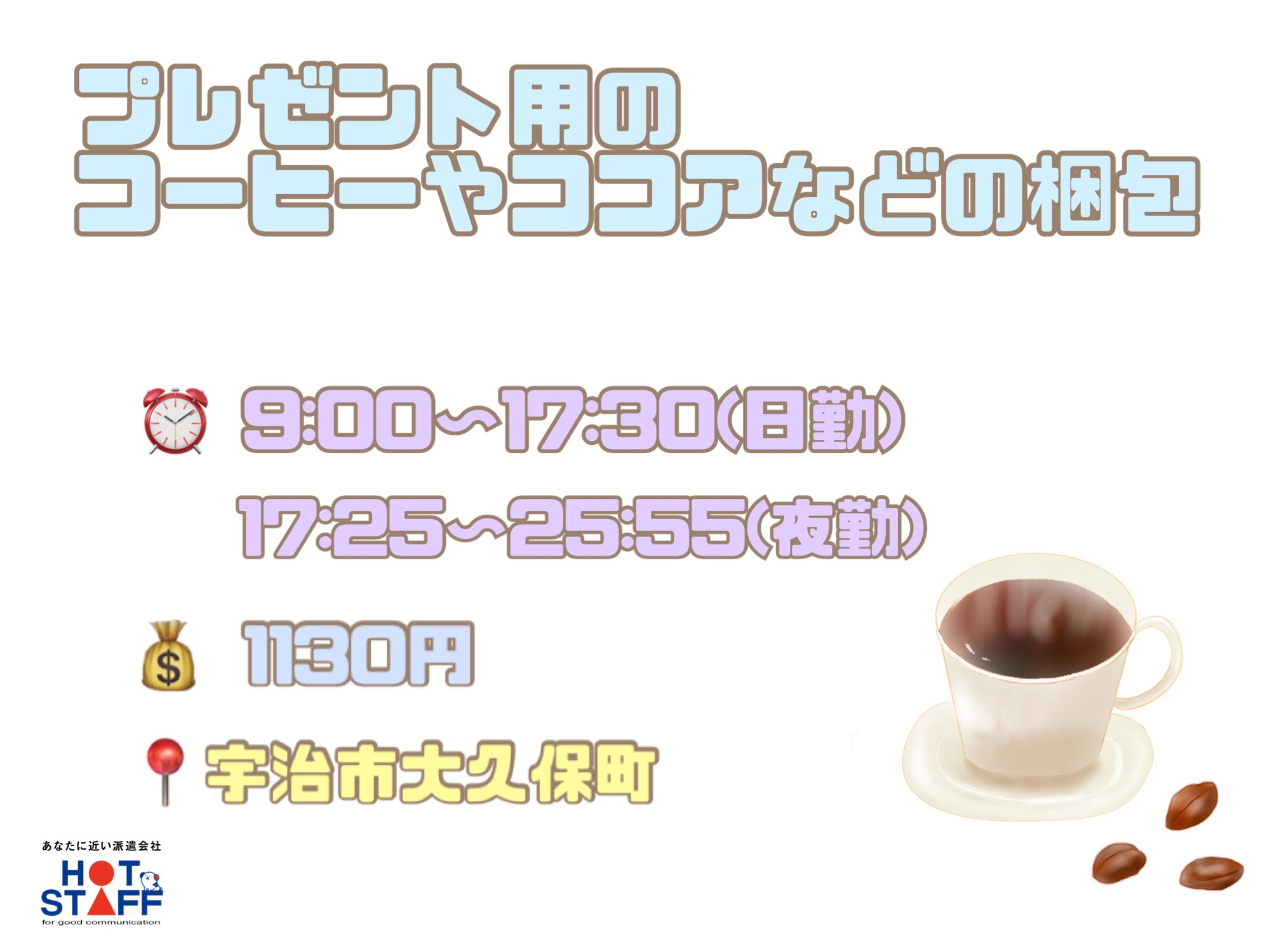 日勤・夜勤 選べます/ドリップコーヒーやココアの検品・箱詰め作業