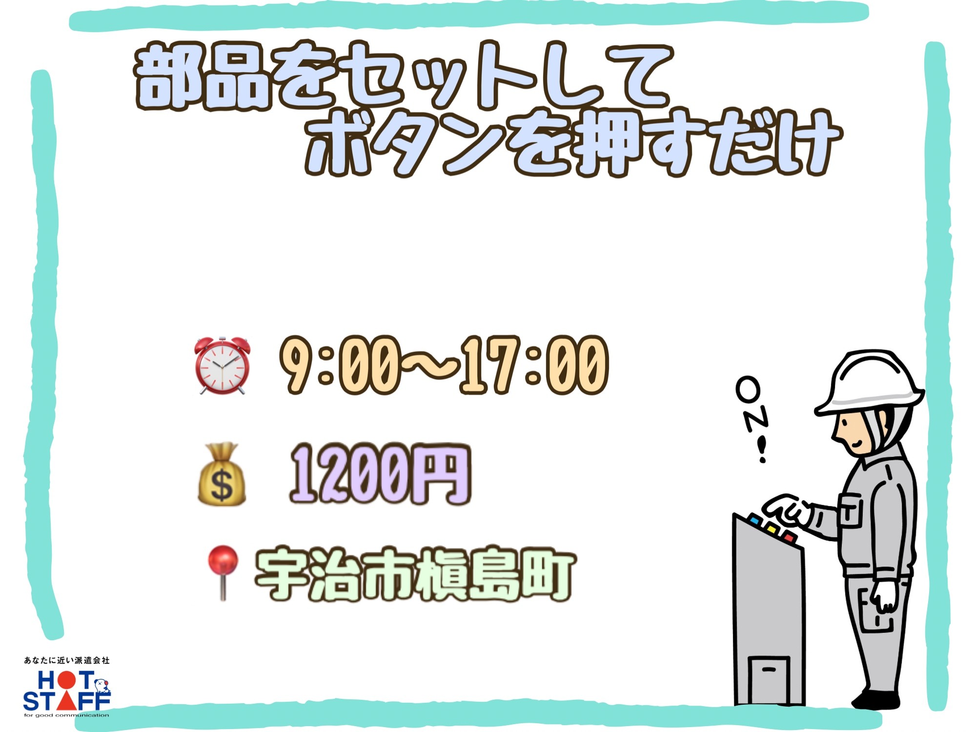 かんたんなのに高時給/選べる時間帯・重量物ナシ・モクモク作業/機械に材料を置いてボタンを押すだけ