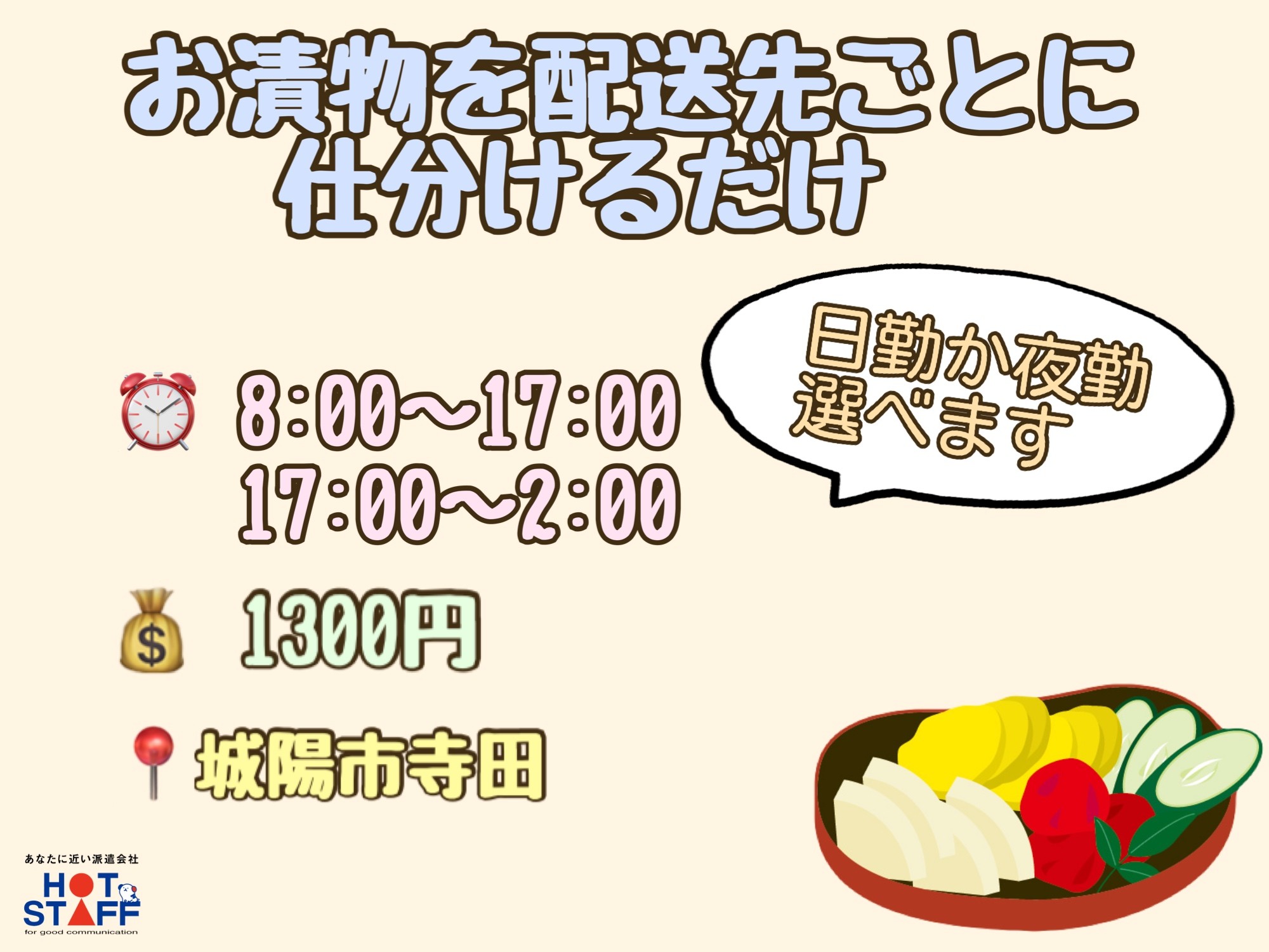 平日お休み♪/シフト制・服装自由・週4日~OK/リストを見ながらお漬物を仕分けるだけ☆