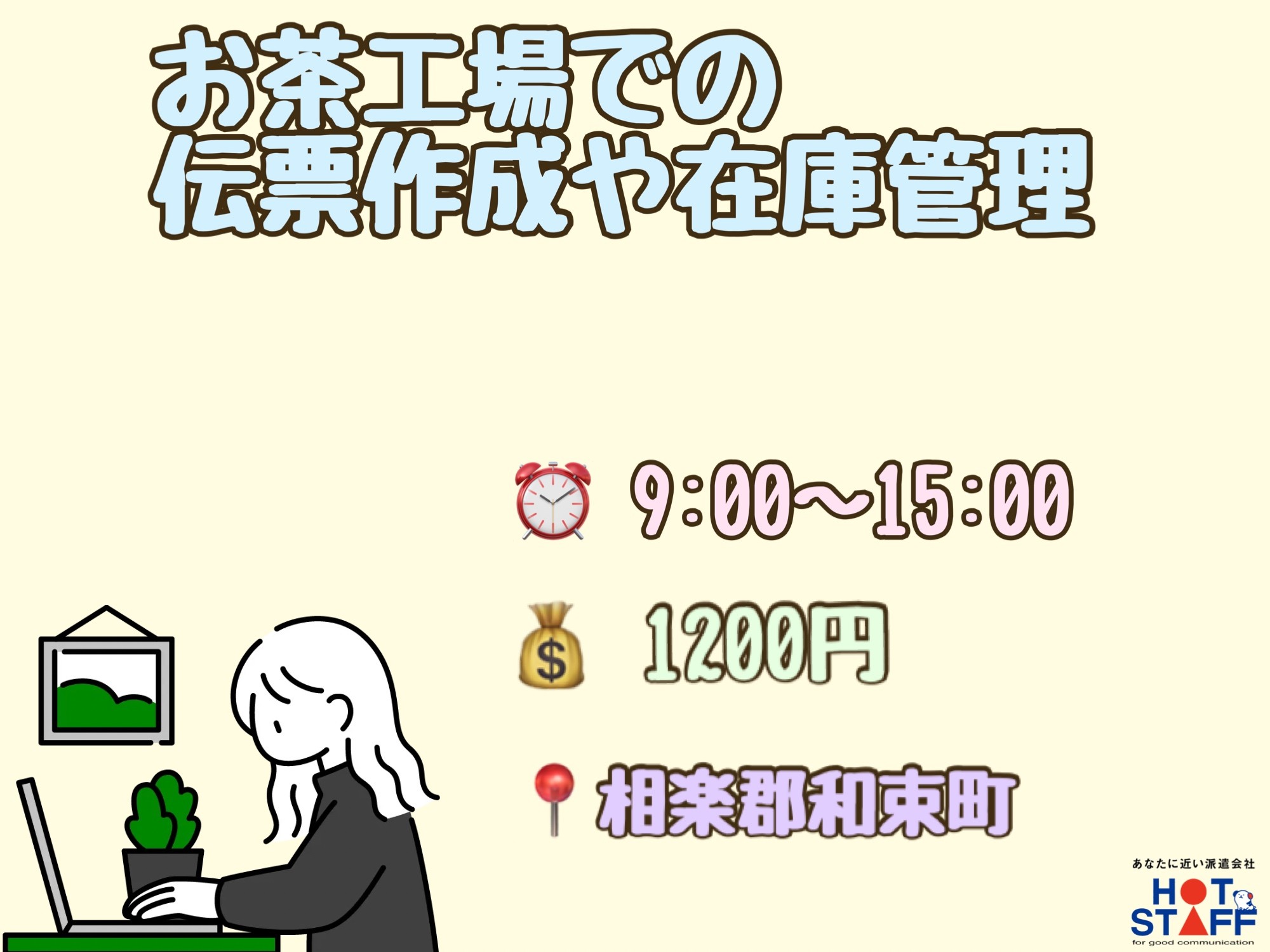 15時までのお仕事☆/土日祝休み・未経験OK・空調完備/お茶工場での伝票作成や在庫管理♪