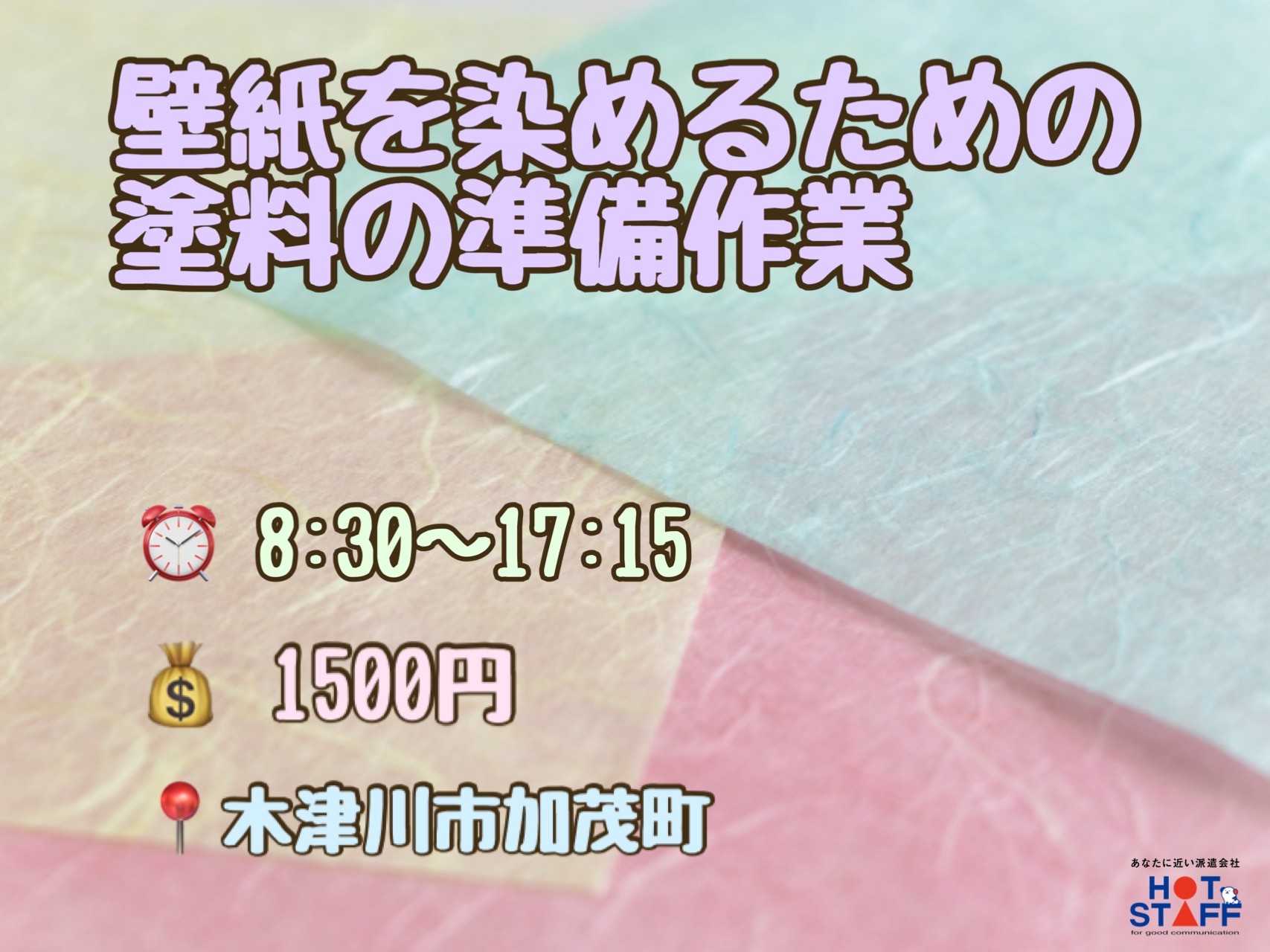 高時給1500円/駅チカ・未経験OK・土日祝休み/壁紙を染めるインクの準備をお願いします★