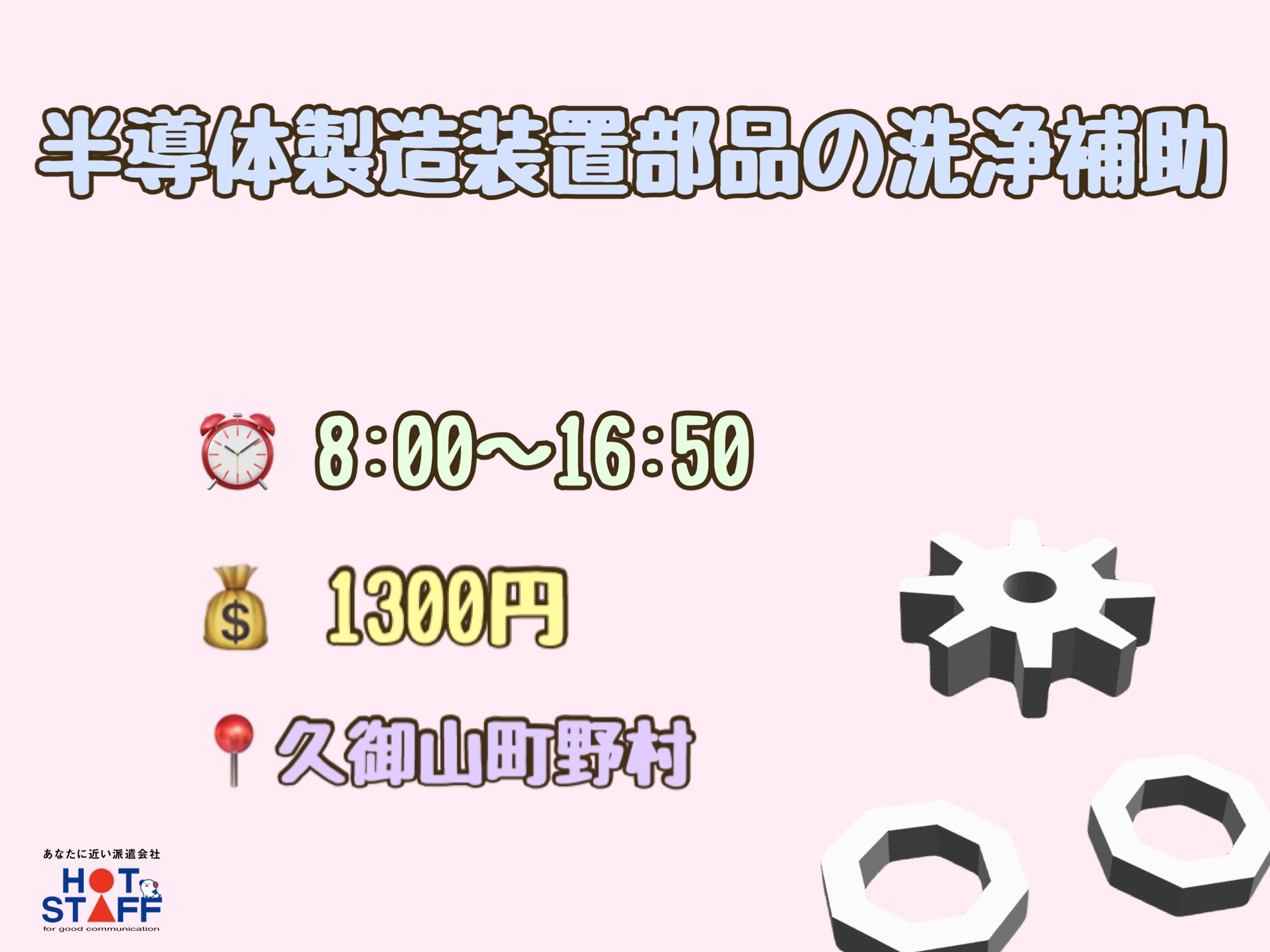カンタンなのに高時給♪/空調完備・土日祝休み・重量物ナシ/部品をトレーに乗せて洗浄機械に入れるだけ