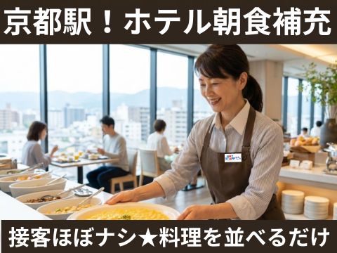 京都駅チカのホテルで、朝食バイキングの準備と補充をお願いします。