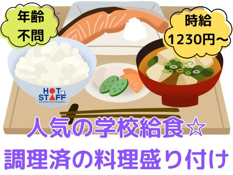 人気★学校給食スタッフ★かんたん調理補助/未経験歓迎/10~17時/週4勤務&平日のみ/車通勤可6)
