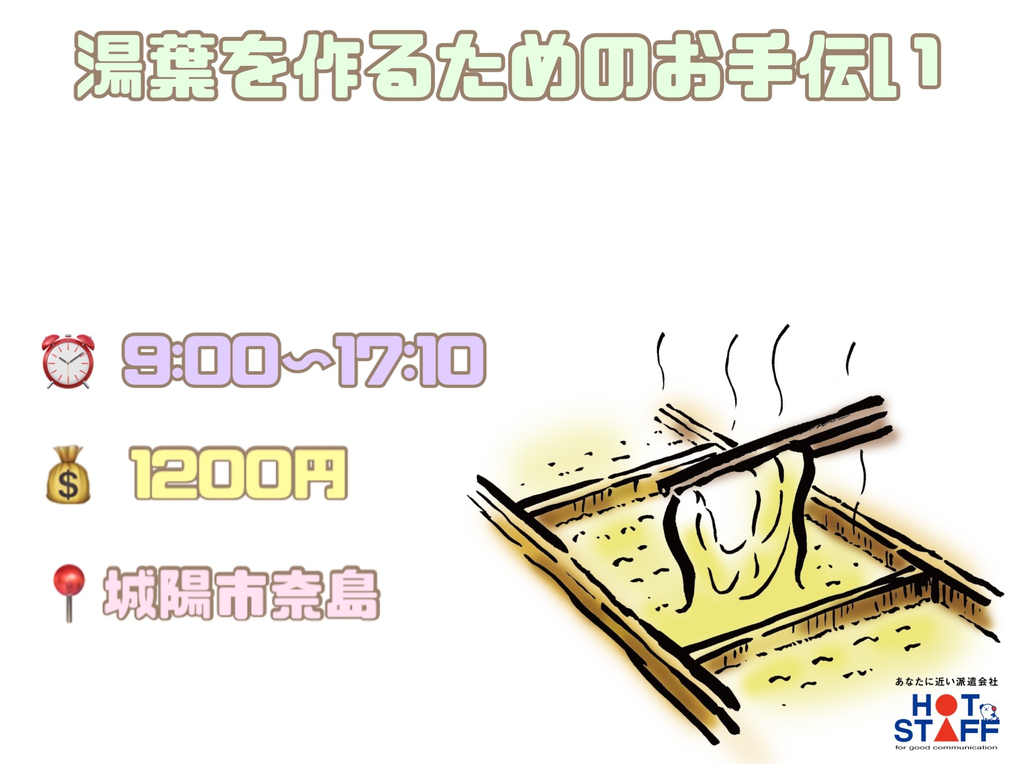 週3日~OK★ゆっくり出勤/日勤・土日祝休み・残業なし/ゆばが破れてないかの目視チェックと包装作業♪