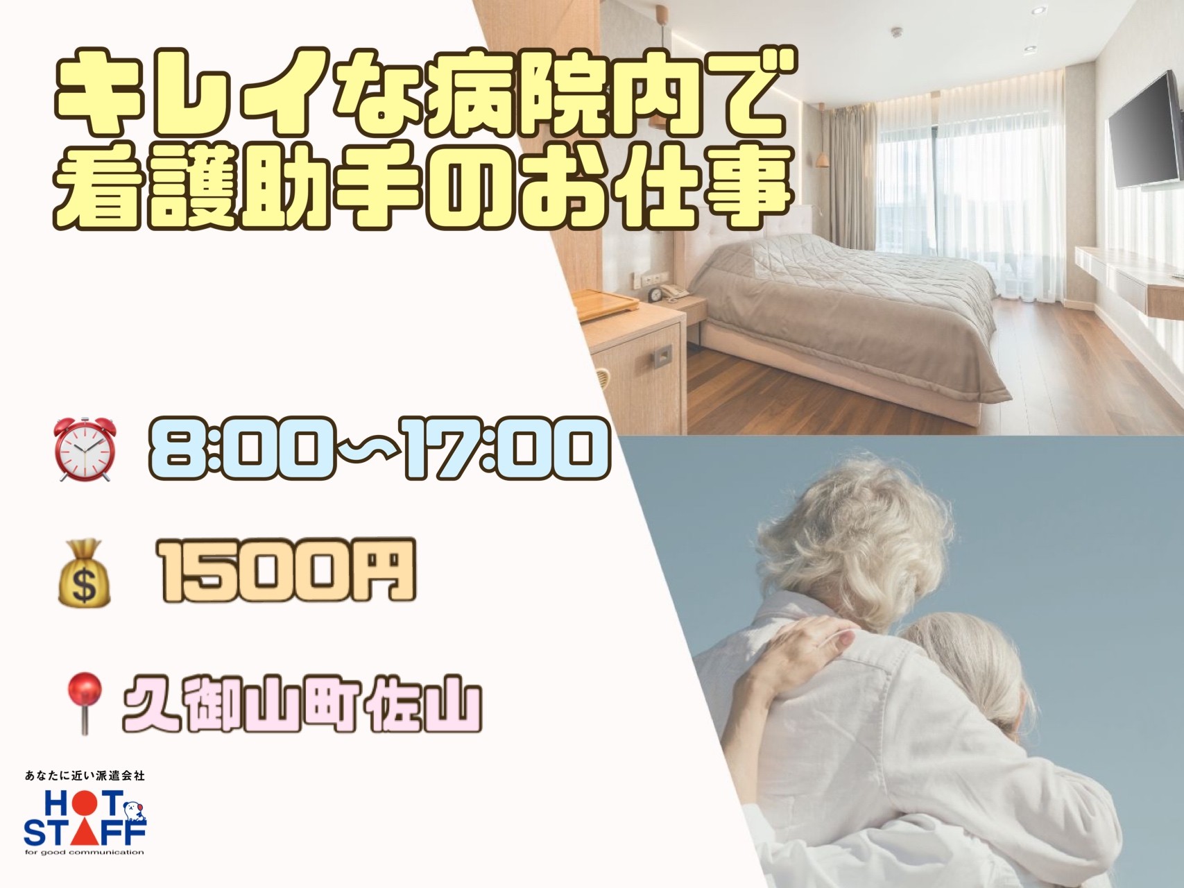 平日に休める☆/未経験OK・マイカー通勤OK・高時給1500円/きれいな病院で看護助手のお仕事