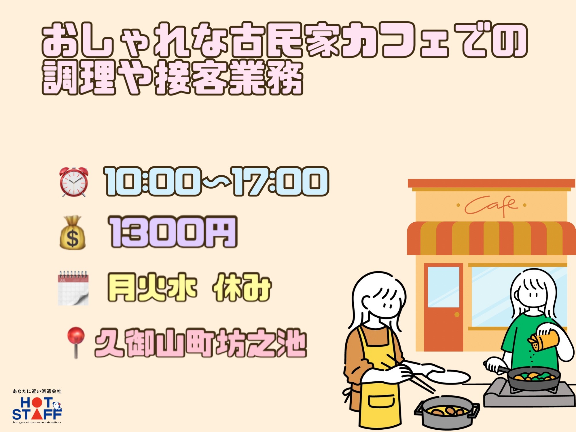 ゆっくり10時スタート/平日休み・週4日勤務/古民家カフェで調理や接客のお仕事