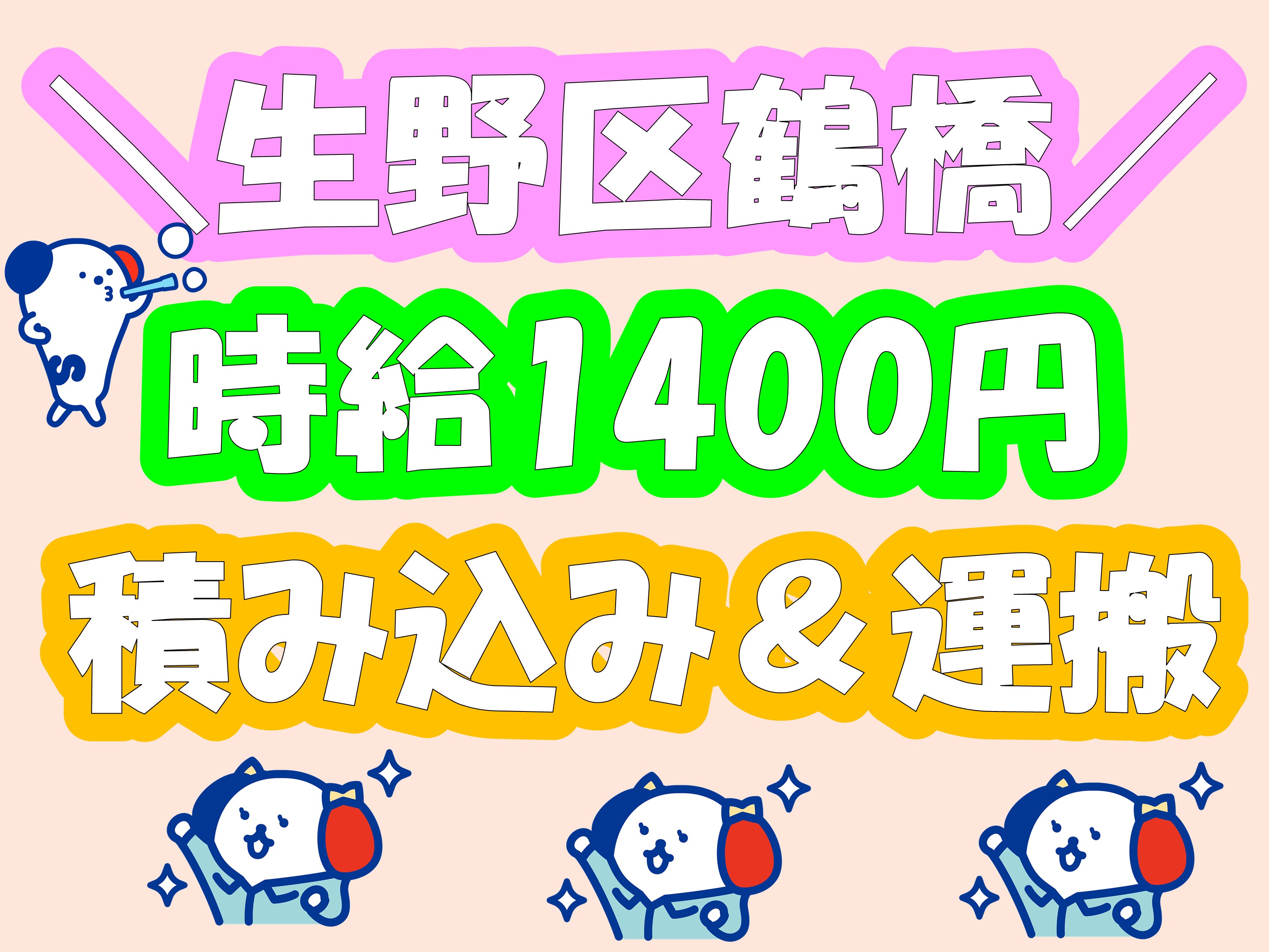 ★生野区鶴橋★ 時給1400円!商品の積み込み&運搬♪+。10Kg未満の商品です!トイレがキレイ(何気に重要w)