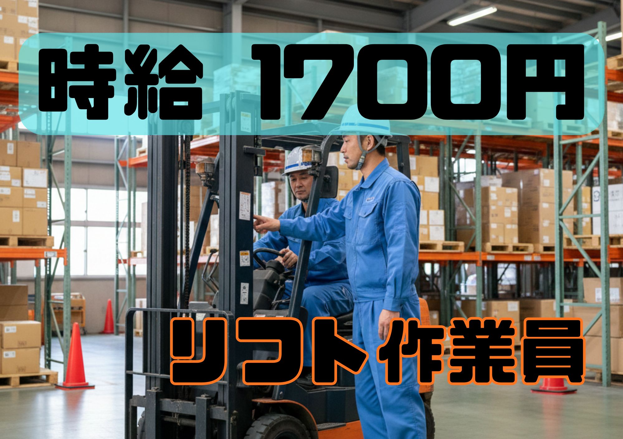 【出ました\高時給/1700円】リフトを使用した入出荷作業員大募集