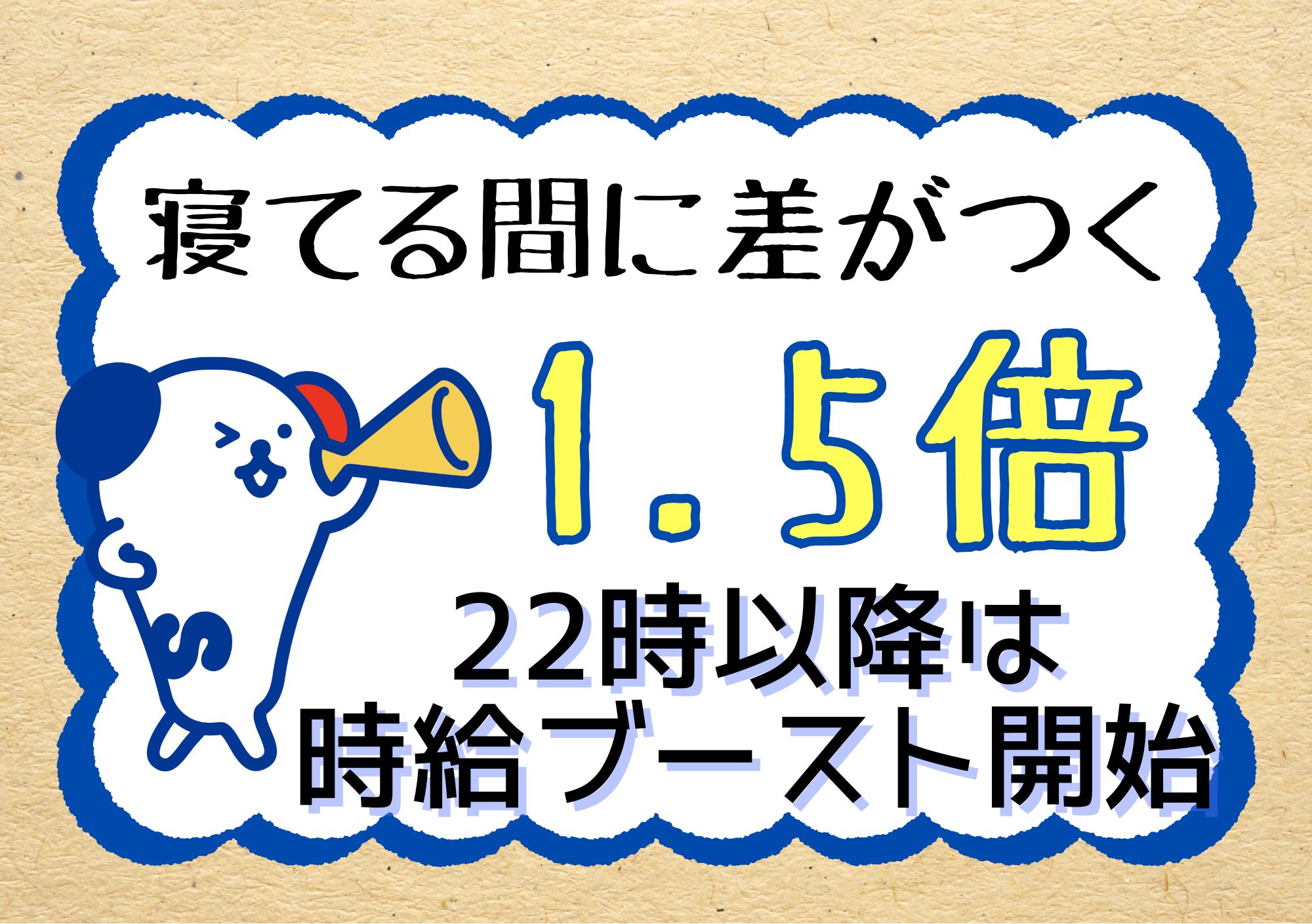 月収例 時給1.250円×8時間×22日+深夜帯手当=261.316円!