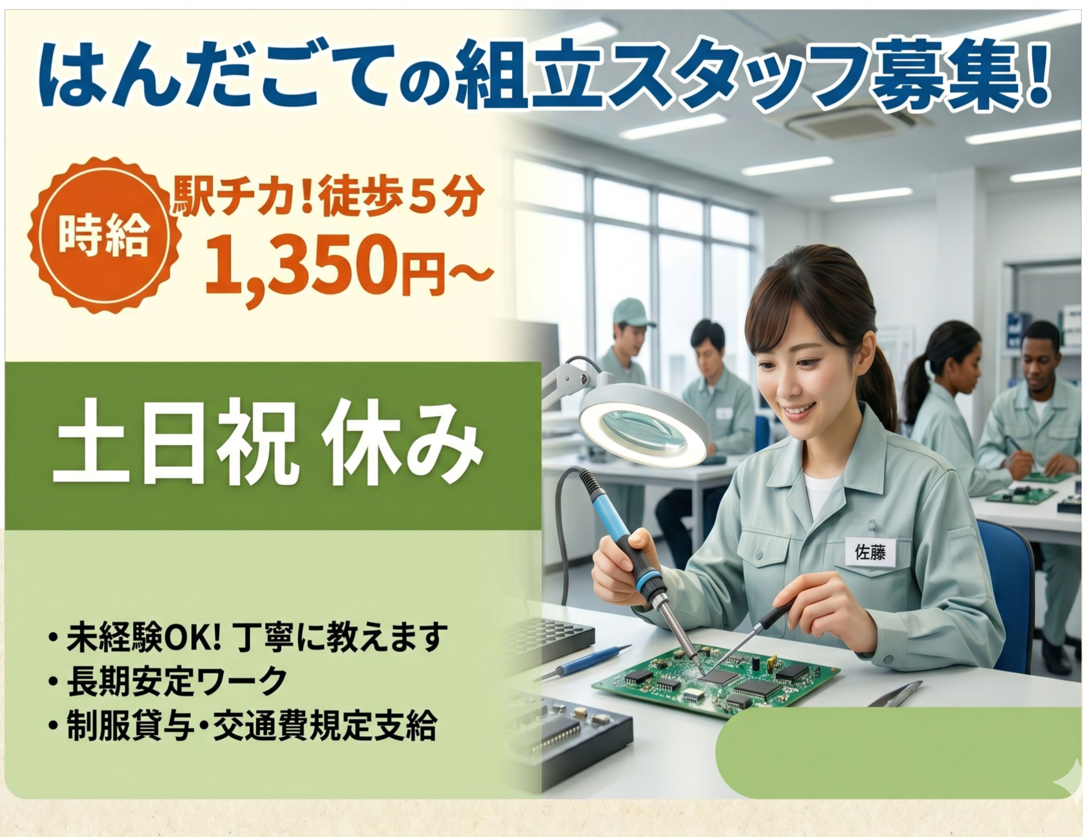 【New】 時給1350円の高時給案件!未経験から★スタートできるコツコツ組み立て作業♪