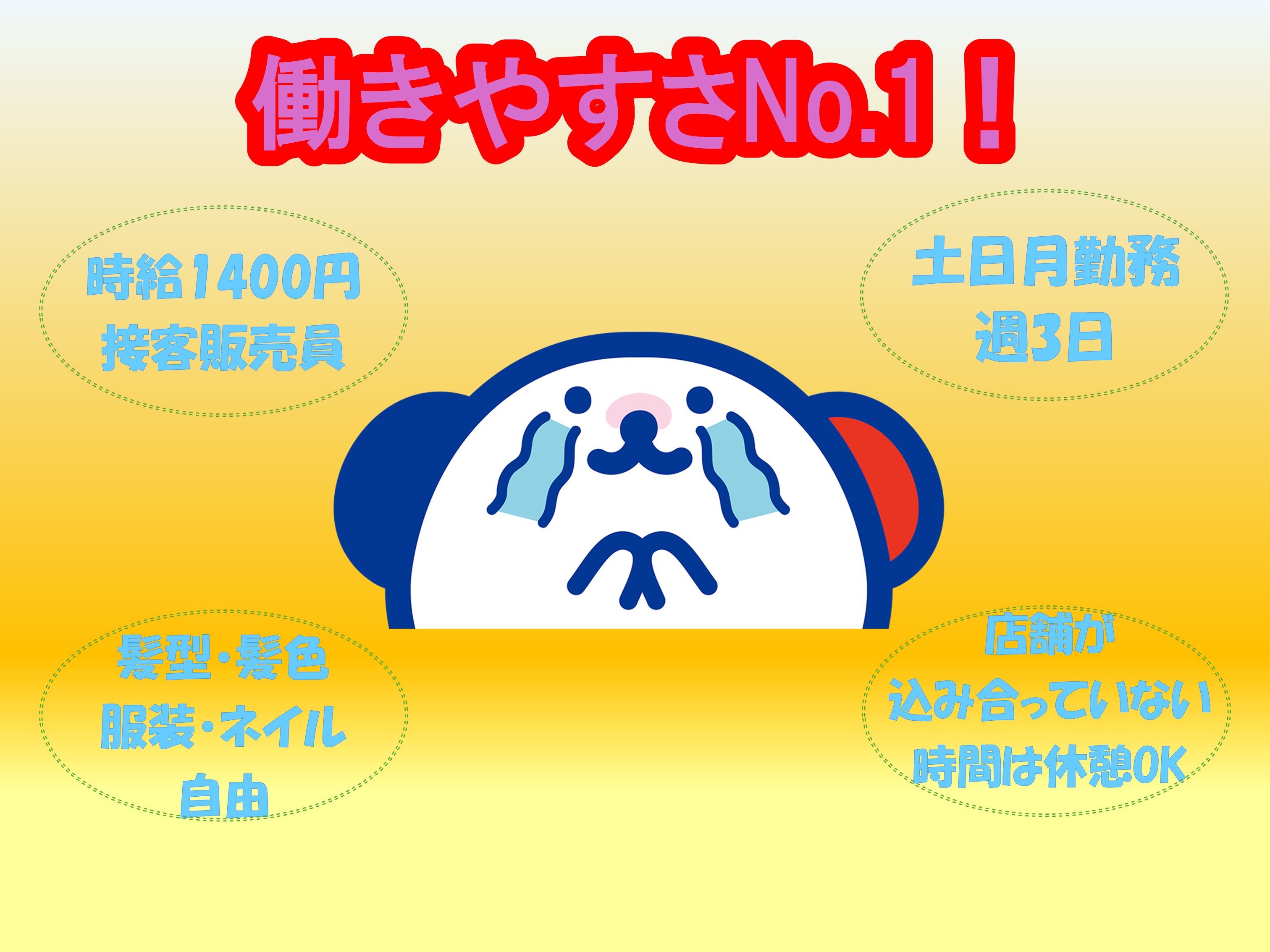 時給1300円×8h×21日 19万1100円+交通費支給/上限あり 時給1300円×7h×21日 ◆交通費規定支給 ◆残業/深夜手当→別途支給 \お給料の前払いOK!/ 稼働分の一部を前払い(規定あり) 週払いOK/規定 2.3日払いOK/規定