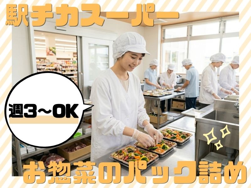 ~働き方、選べる♪~スーパーでお惣菜パック詰め!扶養内・Wワーク大歓迎◎無理なく週3日~勤務◎