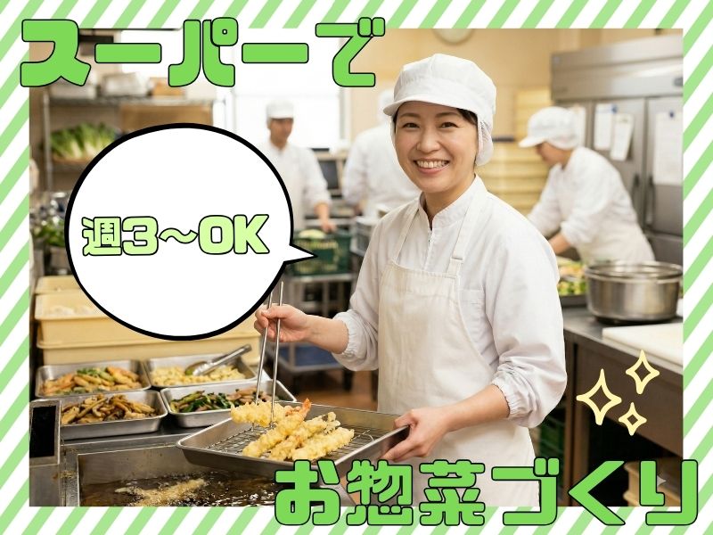 仕事終わり…買い物して帰れる(^_-)-☆午前中→スーパーでお惣菜づくり♪週3日~ok◎勤務地多数