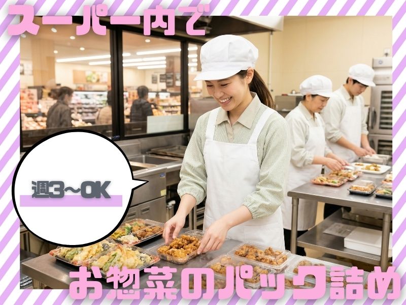 ~働き方、選べる♪~スーパーでお惣菜パック詰め!扶養内・Wワーク大歓迎◎無理なく週3日~勤務◎